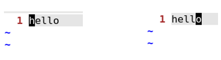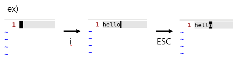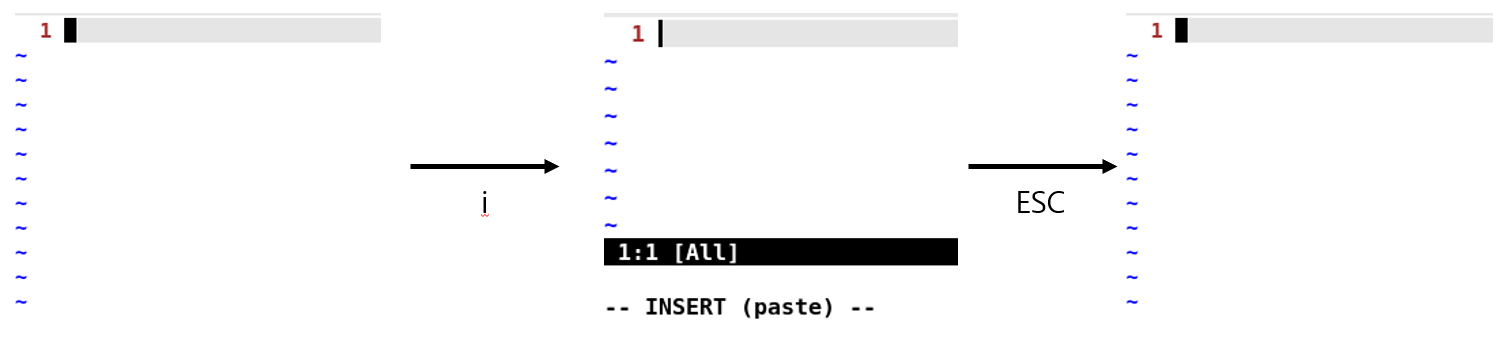 i 키를 누르면 커서가 1번째 사진에서 2번째 사진과 같이 바뀐다.