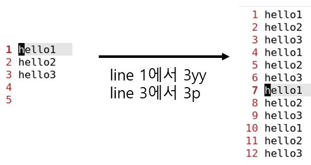 nyy는 커서가 있는 line부터 n개의 line을 복사하는 단축키이다.