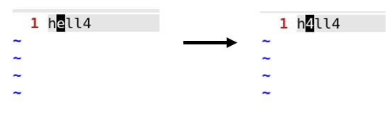 바꾸고 싶은 문자 위에 커서를 두고 r을 누른 후에 바꾸고 싶은 문자를 누르면 된다.